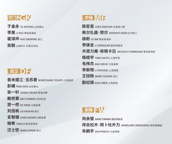 名单里不少人有国字号经验:门将于金永踢过东亚四强赛集训,后防汪士钦、刘浩帆有出场纪录,中场王钰栋、蒯纪闻是核心,锋线拜合拉木能打多个位置,速度快还占身高优势。